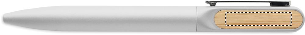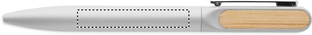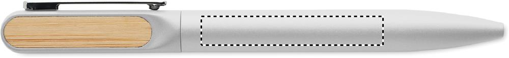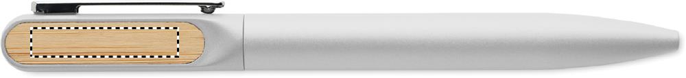 Penna a sfera a rotazione con fusto in alluminio riciclato, parte a rotazione in ABS riciclato e clip in metallo con dettaglio in bambù. Inchiostro blu.