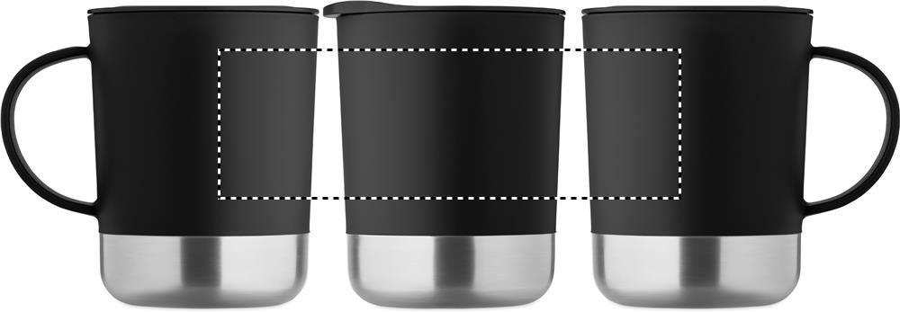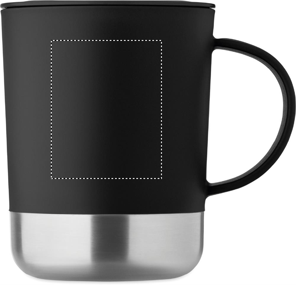 Tazza in PP con base in acciaio inox riciclato (90% acciaio inox riciclato e 10% acciaio inox) e coperchio scorrevole in PP. Capacità: 300 ml.