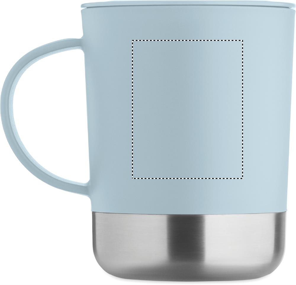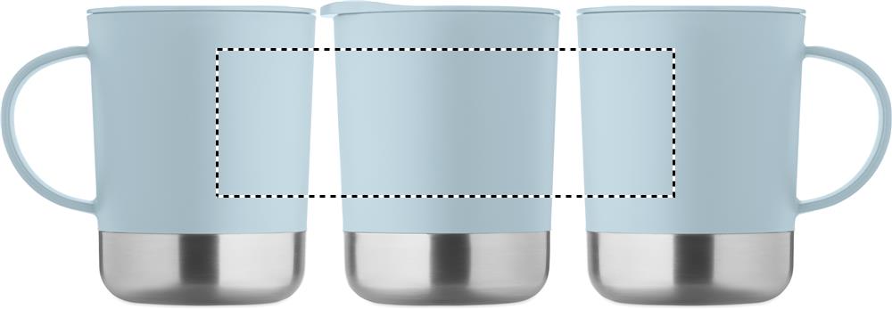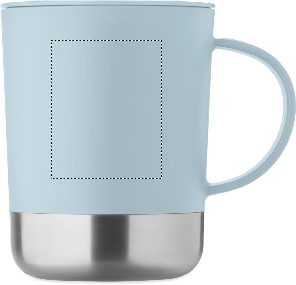 Tazza in PP con base in acciaio inox riciclato (90% acciaio inox riciclato e 10% acciaio inox) e coperchio scorrevole in PP. Capacità: 300 ml.