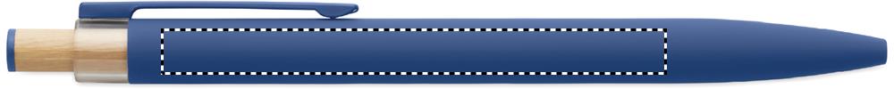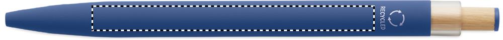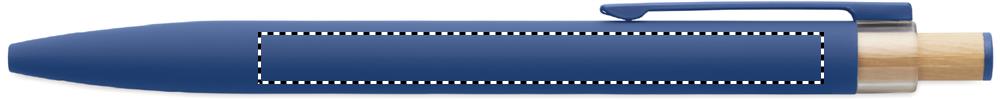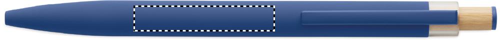 Penna a sfera in alluminio riciclato con pulsante in bambù con dettagli in tinta e clip in metallo abbinata. Inchiostro blu.