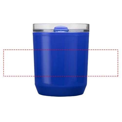 Bicchiere dal design semplice compatibile con la maggior parte delle macchine da caffè e dei portabicchieri per auto. Presenta una struttura a doppia parete con esterno in plastica PP riciclata e interno in plastica PP. Il coperchio scorrevole è realizzato in plastica PP e AS. Capacità: 180 ml.