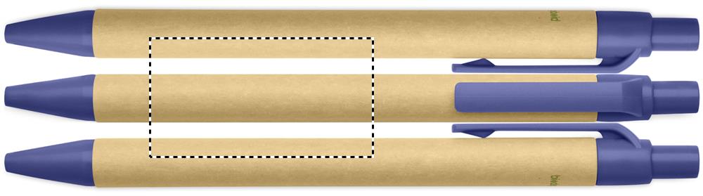 Penna a sfera a pulsante con fusto in carta riciclata e parti in PLA (in mais biodegradabile al 100%). Inchiostro blu.