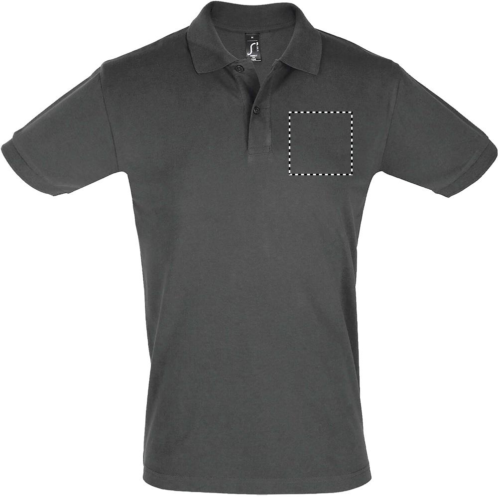 SOL'S PERFECT MEN, Polo da uomo, 100% cotone pettinato ringspun piqué 180, colletto e polsini a coste 1X1, nastro di rinforzo sul collo, maniche corte, abbottonatura perlata a 2 bottoni tono su tono, tagliata e cucita, bottone di ricambio sulla cucitura interna, (1) Ash: 98 % Cotone / 2 % Viscosa, (2) Grigio Melange : 85 % Cotone / 15 % Viscosa, (3) Antracite Melange : 60 % Cotone / 40 % Poliestere, (4) Sangue di bue : 60 % Cotone / 40 % Poliestere, (5) Denim Heather : 60% Cotone / 40 % Poliestere. Per la corrispondenza delle taglie, consultare la tabella delle taglie nella sezione della documentazione del prodotto.