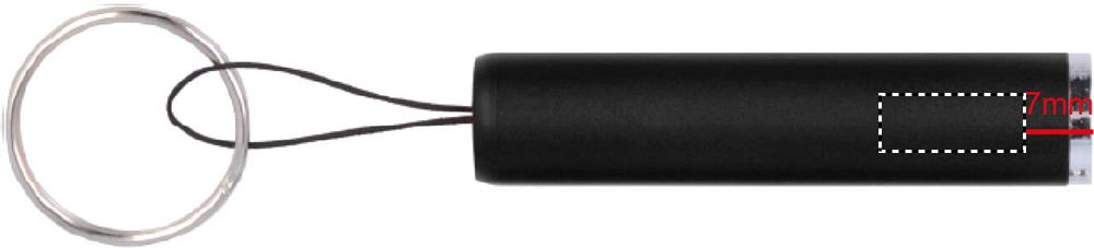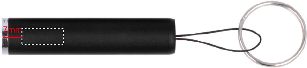 Torcia a LED in ABS. Con anello portachiavi e cinturino. 3 batterie AG3 incluse. Il fusto include una luce per illuminare il logo inciso.