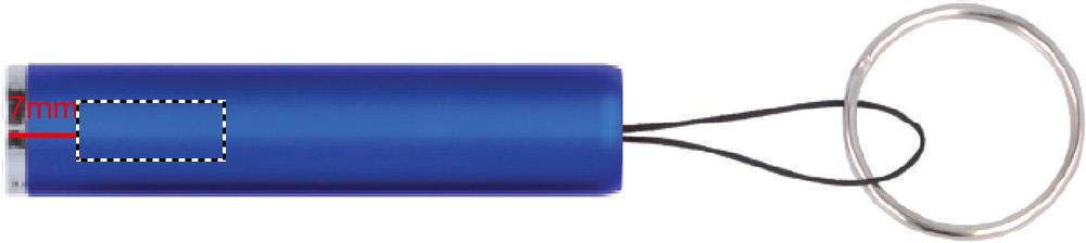 Torcia a LED in ABS. Con anello portachiavi e cinturino. 3 batterie AG3 incluse. Il fusto include una luce per illuminare il logo inciso.